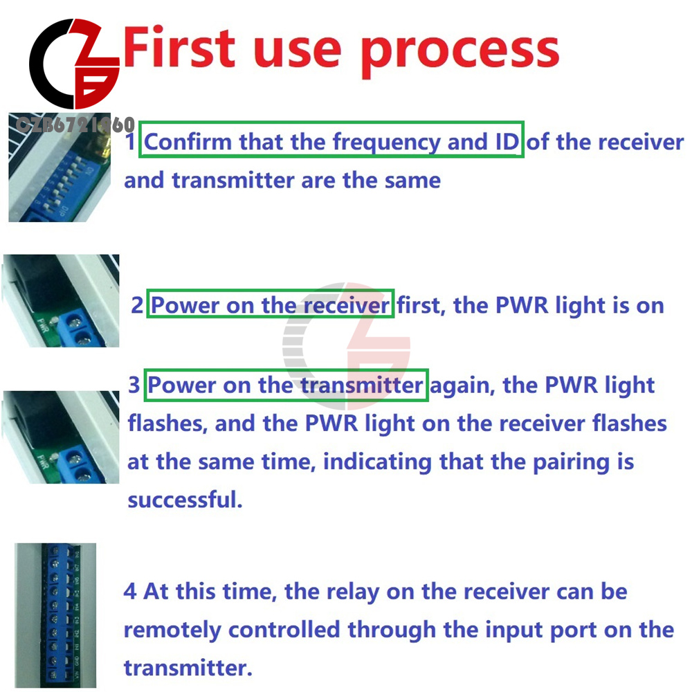 This is a wireless remote control switch with feedback function, no configuration is required, as long as the transceiver "band and ID" settings are consistent, it can be controlled. With feedback function, the LED indicator on the transmitter will indicate the switch status of the receiver.
