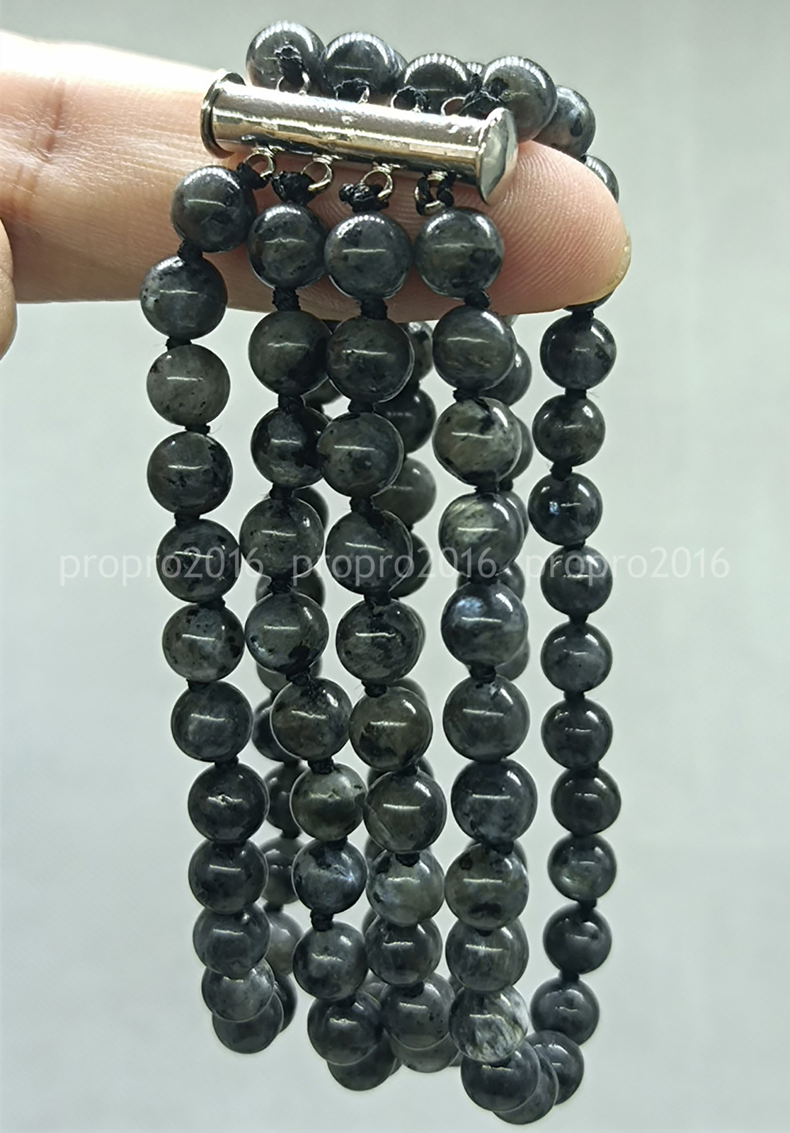 4 Rows Natural 6mm Black Labradorite Round Gemstone Beads Bracelet 7.5''