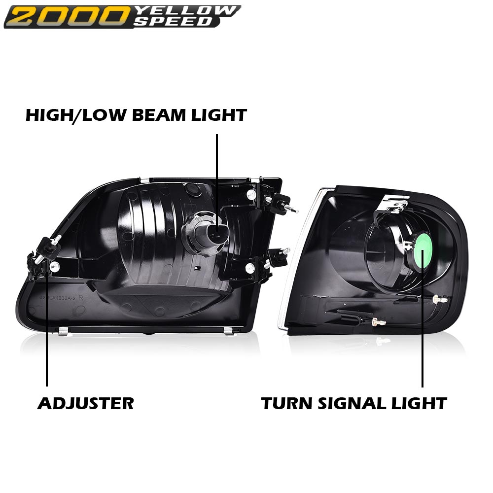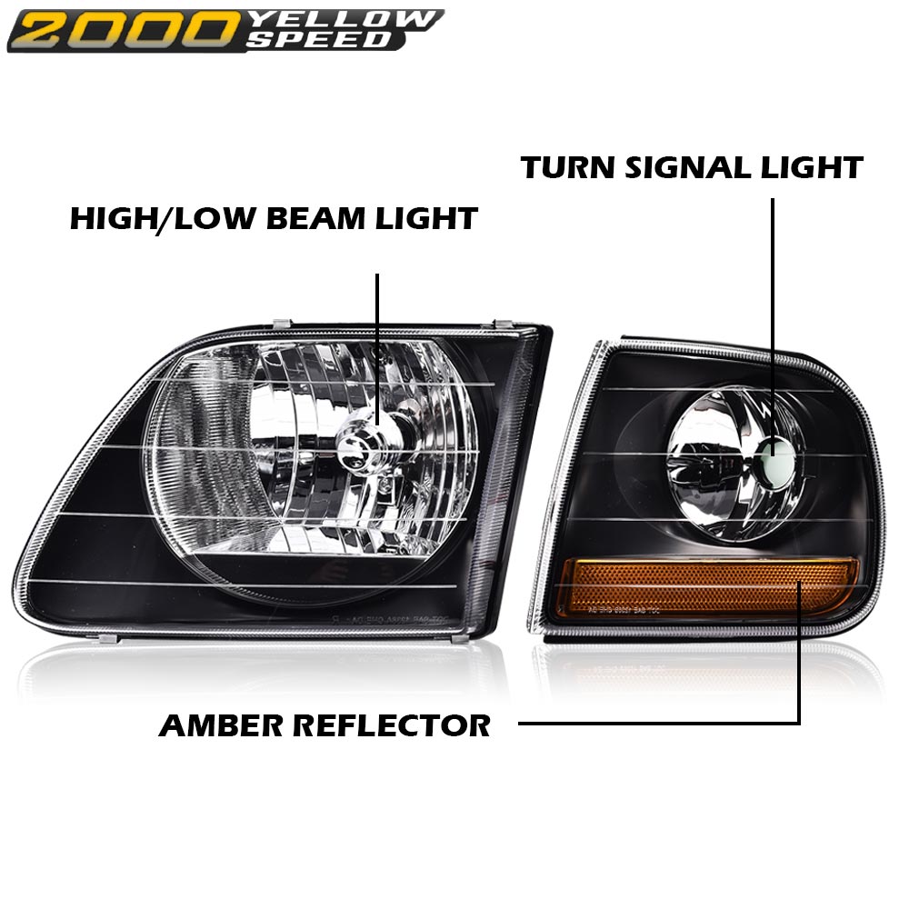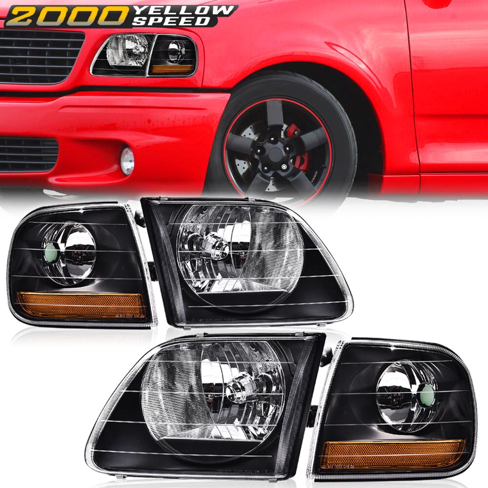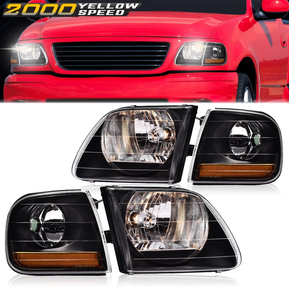 PRODUCTFit For 1997-2003 Ford F150/99-02 Expedition Black Headlights+Corner Lights Pair