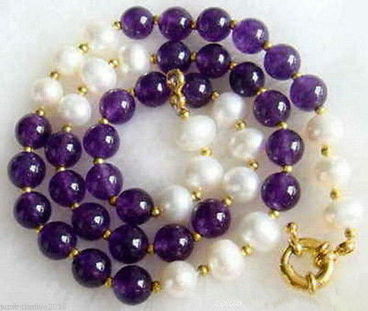 Natural 8mm Purple Amethyst 7-8mm White Freshwater Pearl Beads Necklace 14-36''