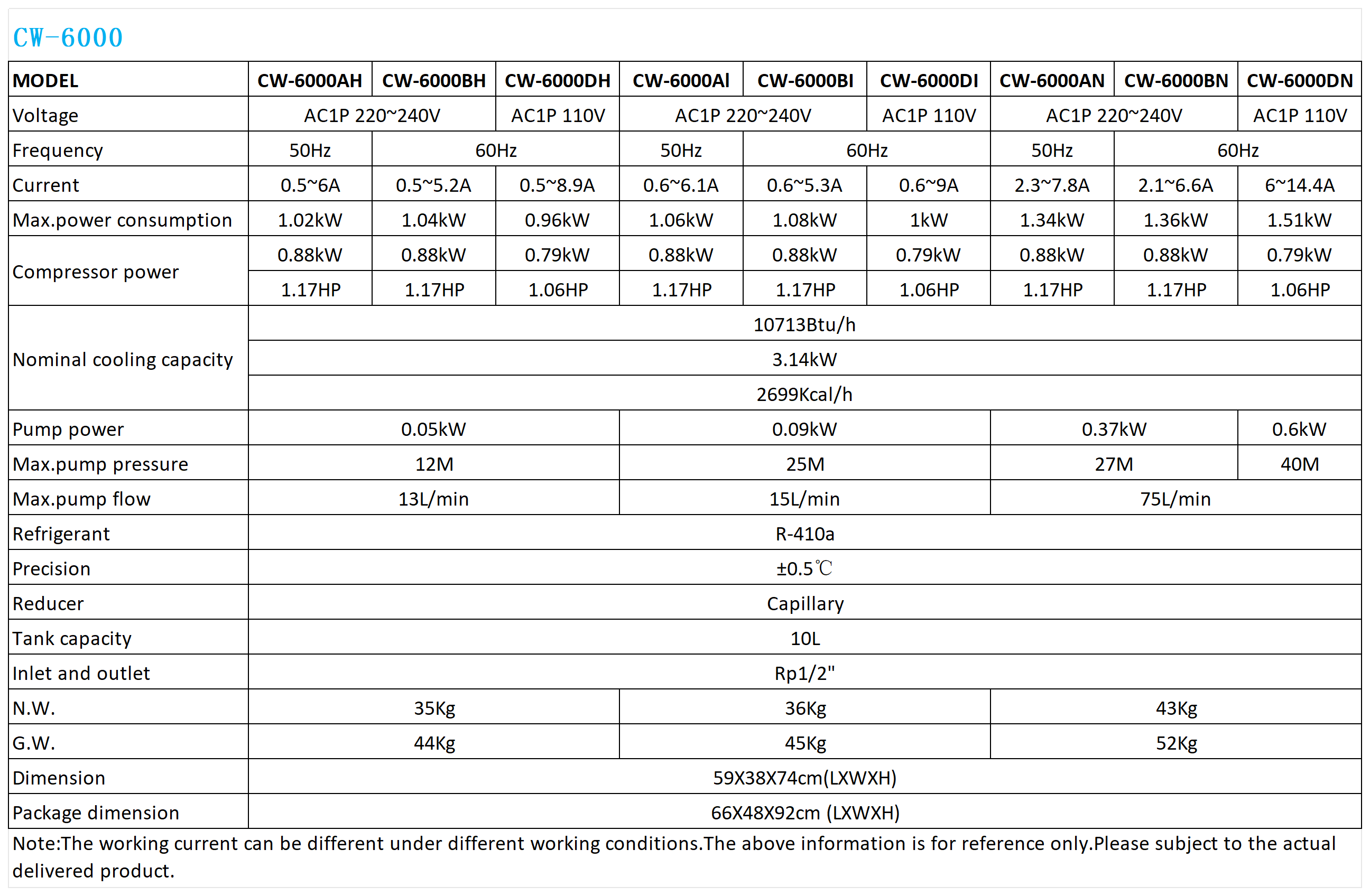 CW-6000AH: applied to cool three 100W CO2 laser tubes or four 80W CO2 laser tubes;