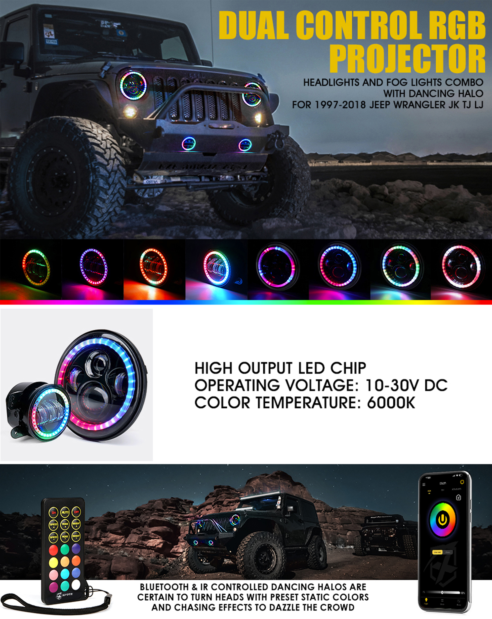 2* 7” Chasing RGB Headlights