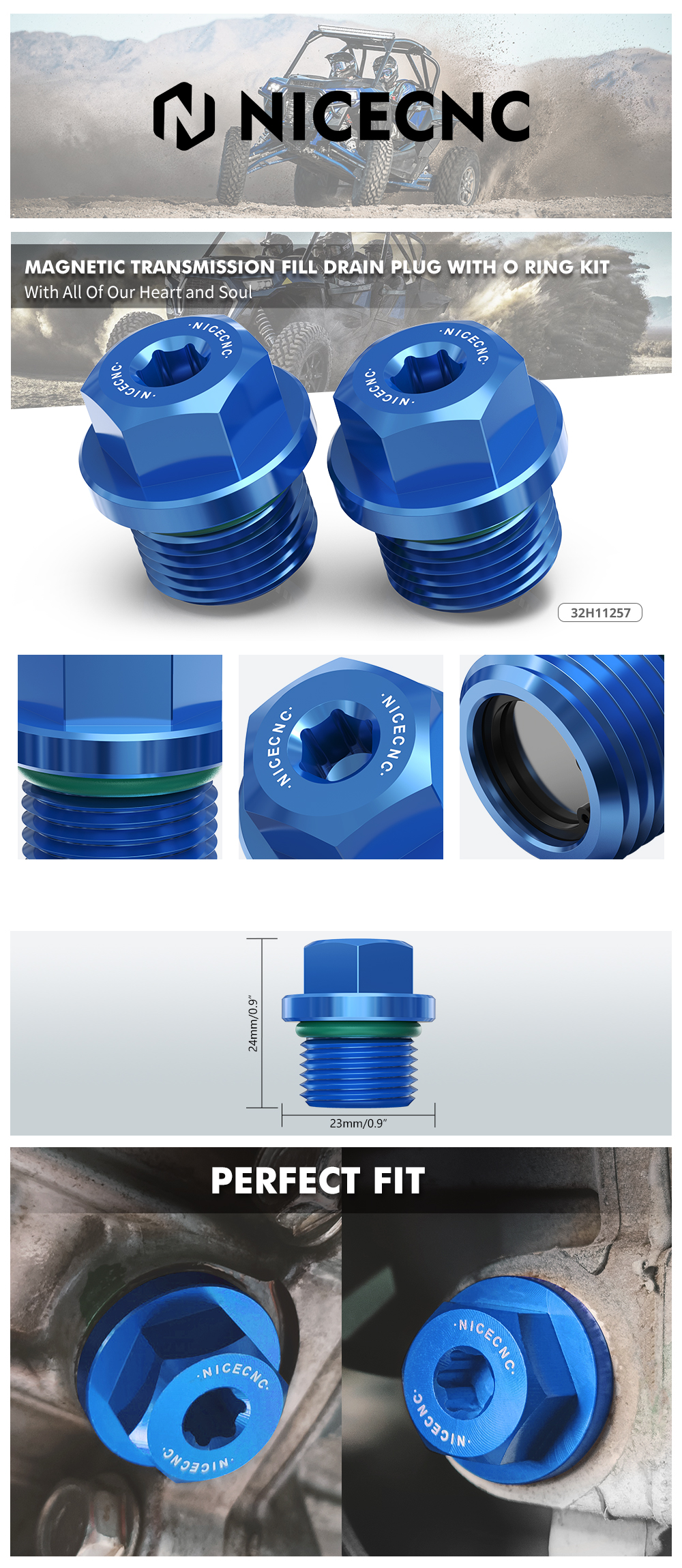 【Magnet Retention Design】Concerned about magnet detachment? Our oil drain screw features a secure spring clip design that prevents accidental dislodging of the magnet. Drive confidently knowing that your magnetic protection is always in place.【 Neodymium Magnet】The oil drain screw features a strong Neodymium magnet, enduring temperatures up to 120 degrees Celsius. It captures metal impurities and guards against demagnetization, preserving peak transmission performance. 【Dual Hex Design】Building upon the inner hex design, we've introduced an external hex feature. This enhancement simplifies the disassembly and installation of screws during transmission maintenance. 【Durable Material】Transmission fill and drain plug are made of 6061 aluminium alloy, our kit undergoes meticulous CNC cutting and anodization processes. This results in exceptional rust resistance and durability. 【Better O-Ring Material】Compared to NBR O-Ring, our transmission fill plug with FKM O-Ring provides remarkable high temperature resistance, better corrosion resistance which preventing oil leaks from transmission. Package Included: 1x Fill Plug With O-Ring 1x Drain Plug With O-Ring Fitment: For Polaris General 1000 EPS 2016-2020 For Polaris General XP 1000 Deluxe 2021 For Polaris Ranger XP 900 2013-2019 For Polaris Ranger XP 900 EPS 2013-2019 For Polaris RZR 570 2014-2020 For Polaris RZR 800 EFI 2012 For Polaris RZR 900 2014-2020 For Polaris RZR 4 900 EPS 2015-2018 For Polaris RZR 4 900 LE EPS 2014 For Polaris RZR XP 900 2011 For Polaris RZR XP 900 EFI 2012-2013 For Polaris RZR 4 XP 900 2012 For Polaris RZR XP 4 900 2013 For Polaris RZR XP 1000 EPS 2014-2020 For Polaris RZR XP 4 1000 EPS 2014-2020 For Polaris RZR XP Turbo EPS 2015-2021 For Polaris RZR XP Turbo S 2019-2020 For Polaris RZR XP 4 Turbo EPS 2016-2018 For Polaris RZR XP 4 Turbo S 2019-2020 For Polaris RZR XP 4 Turbo S Velocity 2020 For Polaris Sportsman 550 EFI 2010 For Polaris Sportsman 550 EFI EPS 2011 For Polaris Sportsman 550 EPS 2012-2014 For Polaris Sportsman XP 550 EFI 2009 For Polaris Sportsman XP 550 EFI EPS 2009
