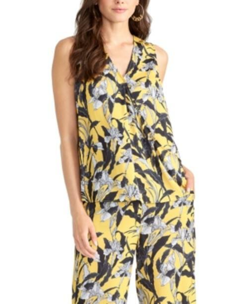Rachel Rachel Roy's sleeveless top is styled with a V-neck and a vibrant floral print that adds a tropical vibe to any look. (Clearance)