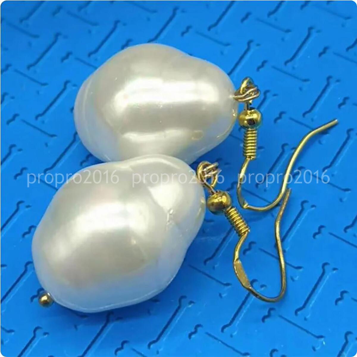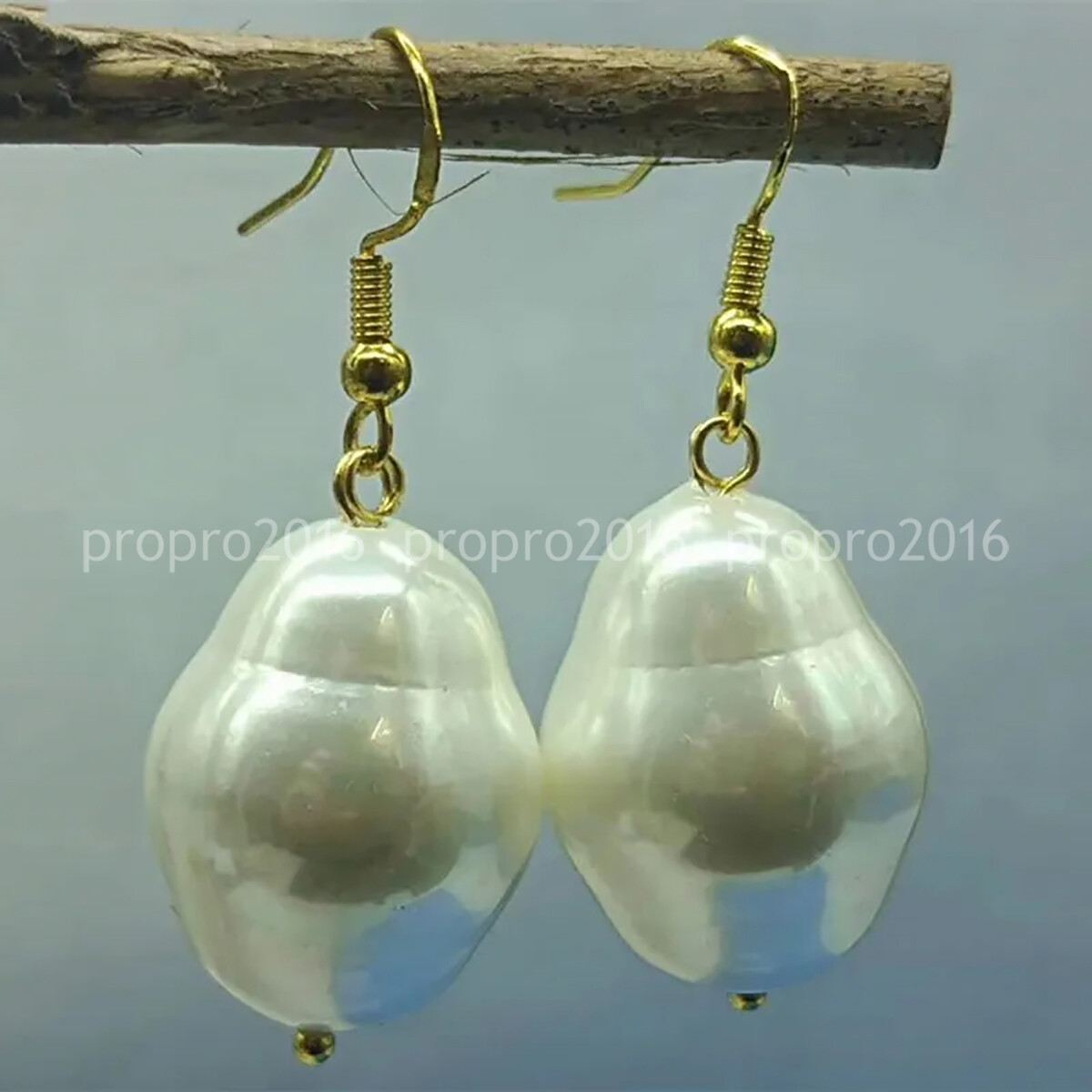 Huge 20mm White South Sea Baroque Shell Pearl Dangle Hook Earrings