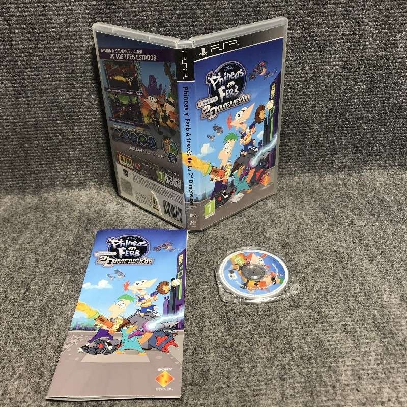 | Juego Phineas y Ferb a través de la segunda dimensión para la plataforma Sony PSP, completo, contiene manual de instrucciones, región Pal, multidioma, incluye Español, funciona correctamente. |