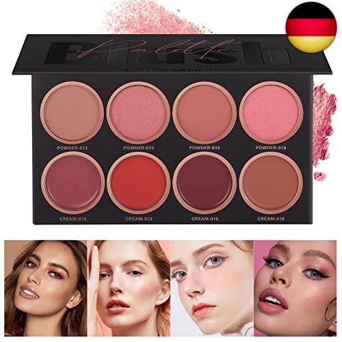 [ 8-Farben-Rouge-Palette ] Es gibt 8 Farben in der Rouge-Palette, unterteilt in 4 Trockenpulver und 4 Rouge-Cremes, mit einer Vielzahl von Kombinationen, die einfach zu färben sind, und intelligente Farbtonungsfaktoren machen die Farbe rosig und durchscheinend Verleihen Sie Ihrem Hautton einen natürlichen Matt-Effekt.[Einfach zu schminken] Die Textur ist glatt und fein, hat eine super glatte und weiche Pudertextur, macht das Make-up leicht und glatt, wodurch es sich gleichmäßig mit der Haut vermischen kann, ohne Puder zu fliegen, und macht das Make-up exquisiter, verleiht der Haut ein transparente Textur, kann gemischt werden, um natürliche Matt- und Highlight-Effekte zu erzeugen.
