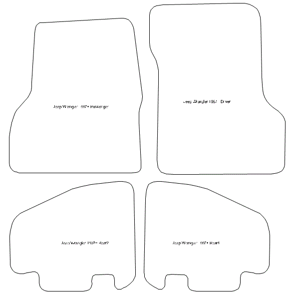 • A full set of Tailored Car Mats, specifically designed for your Jeep Wrangler 1997-2007.