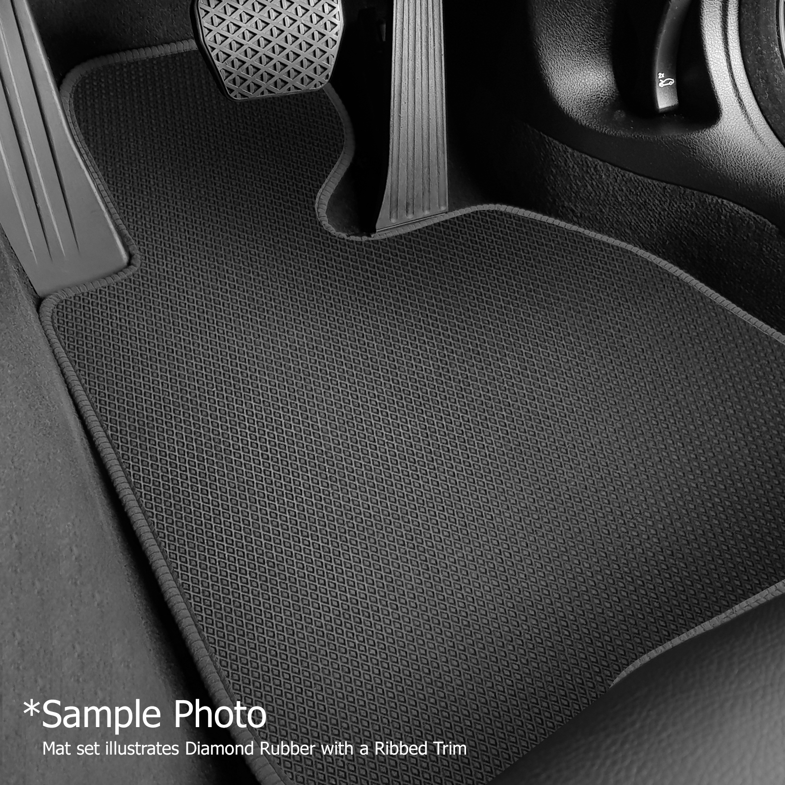 Our best Luxury Rubber Car Mats are 'Reach Certified' meaning there's no nasty smells or substances. Enjoy all of the benefits of a Luxury Car Mat set, in Rubber! Small Diamonds blend with a contrasting Ribbed Binding, locked together with a contrasting thick Cotton Stitch, all in the colours of your choice. The Heavy Duty 100% Rubber material is hard wearing and built to last. Each mat is fully tailored to fit the floor wells perfectly, ensuring 100% floor protection.