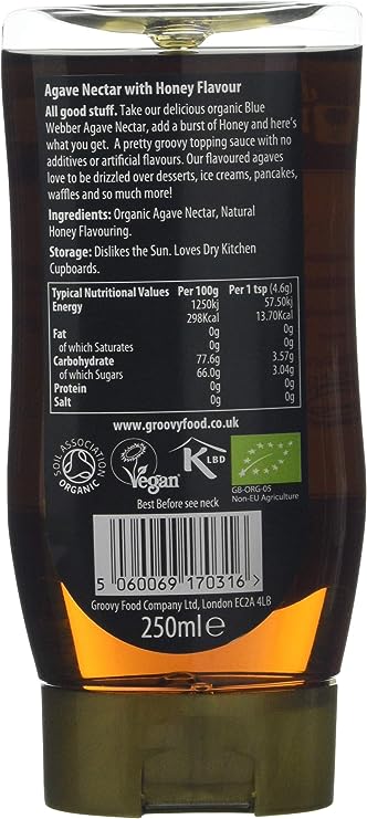 Take our delicious organic Blue Webber Agave Nectar, add a big burst of Honey and here�s what you get. A pretty groovy topping sauce packed with no additives or artificial flavours. Our flavoured agave sauces love to be drizzled over desserts, ice creams, pancakes, waffles and much more!.