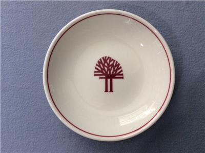 This is a Wedgwood metallised bone china 4 1/4" pin dish. It is restaurant ware and made for heavy use. I’ve been told the pattern is Two Tree. It has a green made in England Wedgwood mark. It is in excellent condition with no chips, cracks or crazing.