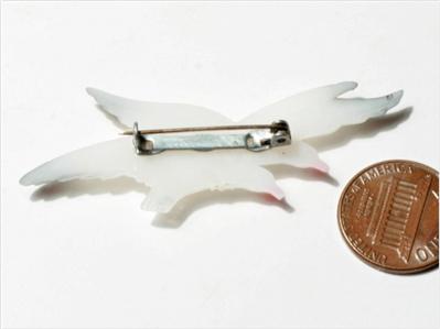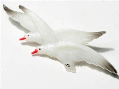 Vintage Bohemian Czech two flying seagulls early plastic hand painted pin brooch