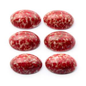 (6) Czech vintage red matrix marble faux gemstone oval molded art glass cabochons beads. Super pieces of art glass that will make a beautiful piece of jewelry. Each piece will be completely unique in pattern and shading.