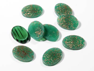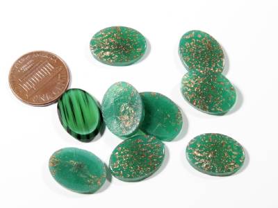 (8) 18mm wonderful Czech Bohemian antique vintage aventurine gold opalescent chrysoprase oval lozenge glass cabochons.