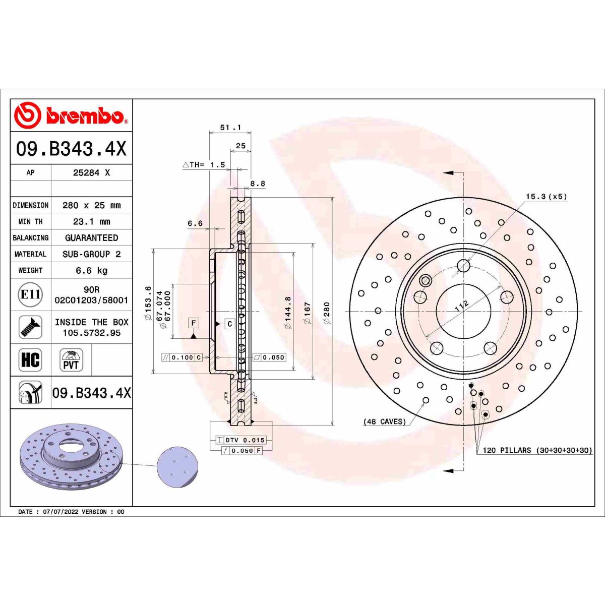 Bremsscheibe BREMBO 09.B343.4X, 1 Stück