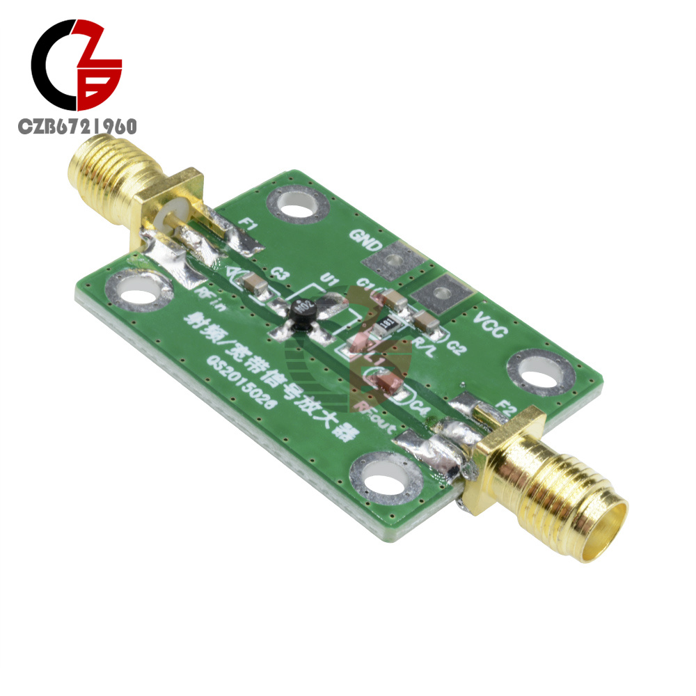 Applications:The amplifier is based on the original 0.1-2000MHz 30dB amplifier, using two-stage cascade is made with low noise, high gain 60dB, and is suitable to detect weak signals.Amplifier Parameters Indicators:Operating frequency: 0.2-1500MHzAmplifier Gain: 60dBMaximum output power: + 10dBm (10mW) @ 1dB compression pointWorking Current: 35mA (9V)Supply voltage: 6-12V DCSystem Impedance: 50ohms The amplifier uses some tips:1) The amplifier at the operating frequency of less than 500MHz, has a very good gain flatness. The lower the frequency, the higher the gain consistency.2) The lower limit of the operating frequency of the amplifier input and output capacitors are subject to default is 0.1uF, it can work to 0.2MHz; you can increase the input and output capacitors to extend the lower frequency limit. Applications should pay attention to enhance the power supply decoupling and regulator.3) When the supply voltage 5-8V changes, can be used as a variable gain amplifier, the gain with the power supply voltage increases. DA control with the power supply voltage, you can control the amplifier gain, the gain adjustment.4) When the supply voltage is 8-10V, low-end gain of 30dB, at which point the amplifier has a low noise figure and good stability.5) When the voltage is 12V, maximum gain, low frequency gain up to 32.5dB.6) Since the amplifier gain very high (60dB), the input attention overload (Fmax = -50dBm), in use should follow the relevant principles of RF and microwave circuit layout. Package Included:1PC 0.2-1500MHz 60dB RF Broadband Amplifier50-4000MHz 0.6dB