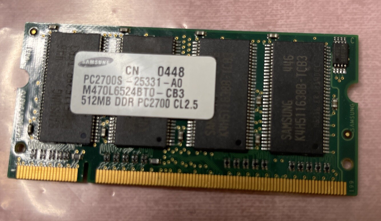 item descriptionlot of 5 Samsung 512MB DDR Laptop - PC2700S RAM TESTED SODIMM M470L6524BT0-CB3