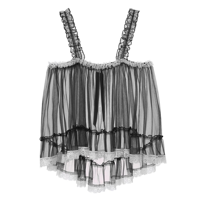 Designed with ruffle shoulder straps, one-layer mesh, pleated and flouncing details, slip top for women is very sexy and impressive.