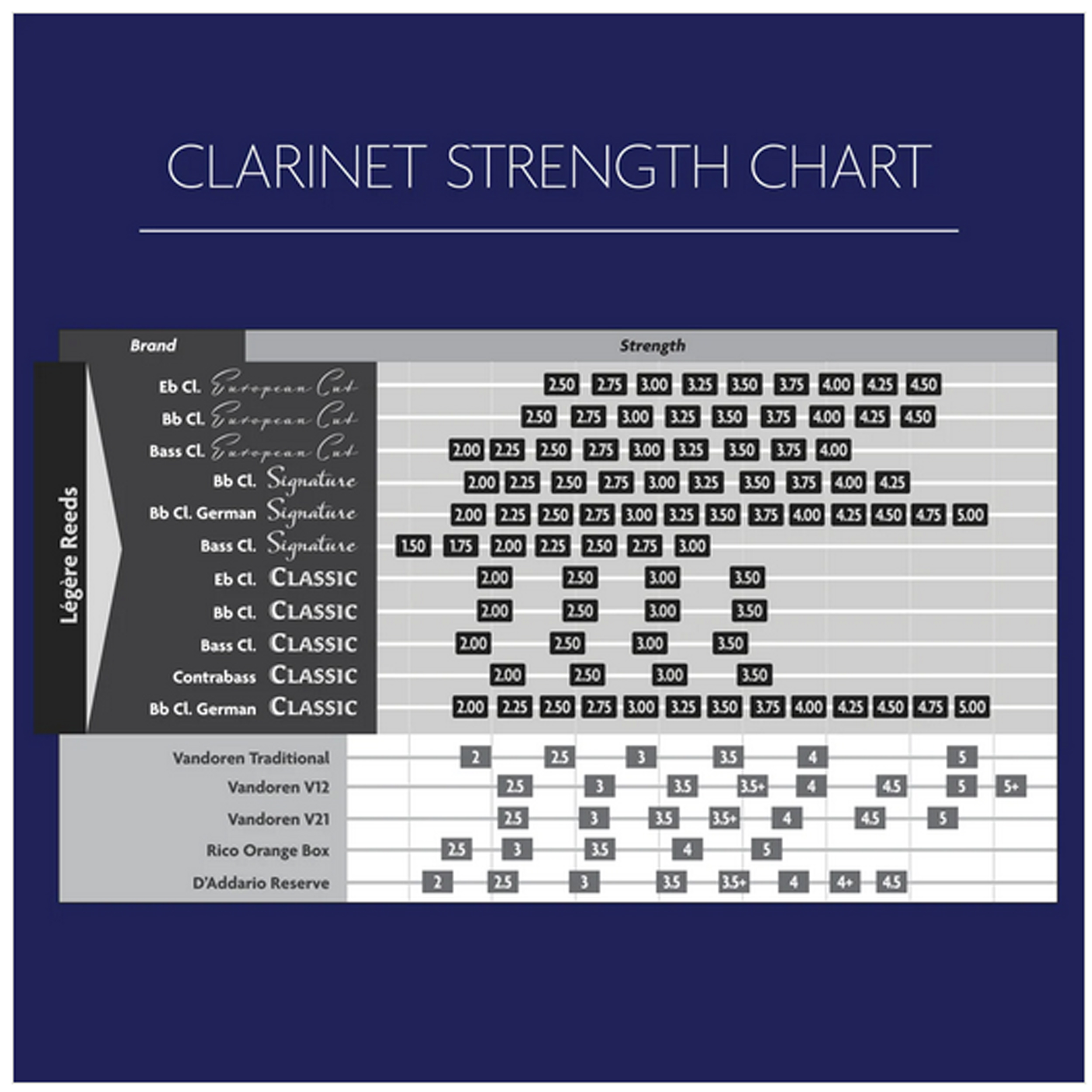 A very stable and free blowing reed that gives players absolute control of their sound and style. The Légère Signature for Clarinet delivers smooth tones that players can trust will last months. This reed is recommended for intermediate and advanced players in control of their playing style, but can be enjoyed by players of all levels.