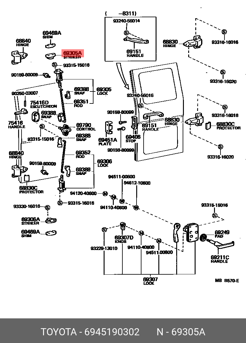 Genuine OE striker assy, back door, upper, 6945190302 for TOYOTA 69451-90302