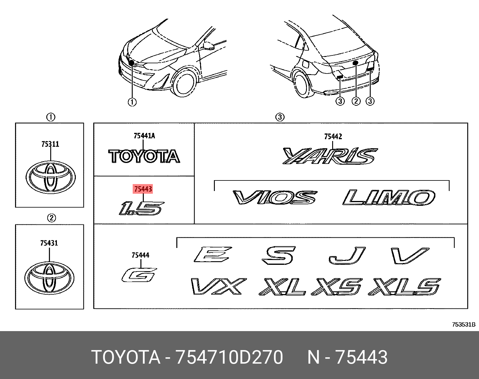 Genuine OE plate, back door name, no.3, 754710D270 for TOYOTA 75471-0D270