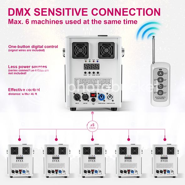 2. This high-quality special light machine DMX offers you 3 gear adjustable heights to achieve different lighting effects, creating a splendid romantic atmosphere. Of course, you can effortlessly change the heights with the digital controller.