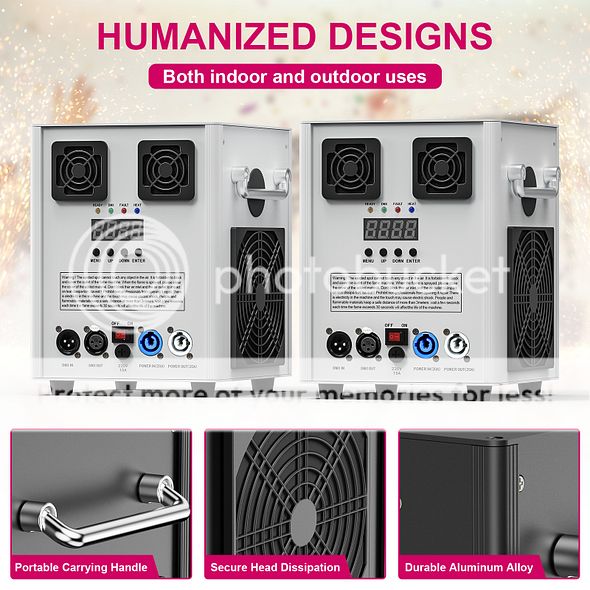 The stage fire machine has a perfect performance due to its corrosion-proof aluminum alloy material, lightweight and portable, providing security use.
