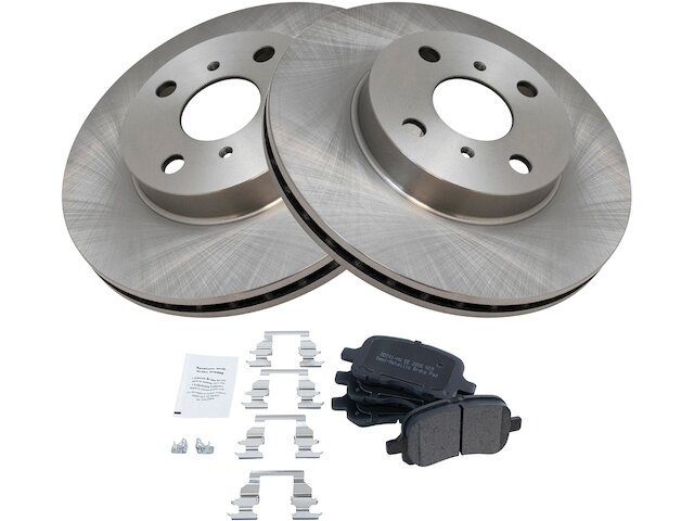 Package Contents: (2) Front Brake Rotors; (1) 12 oz DOT 3 & 4 Brake Fluid; (1) 13 oz Non-Chlorinated 50 State Formula Brake Cleaner; (1) Front Semi-Metallic Brake Pad Set with Contact Point Grease & Hardware