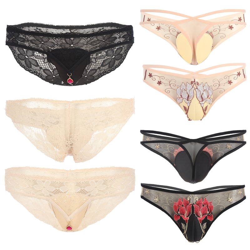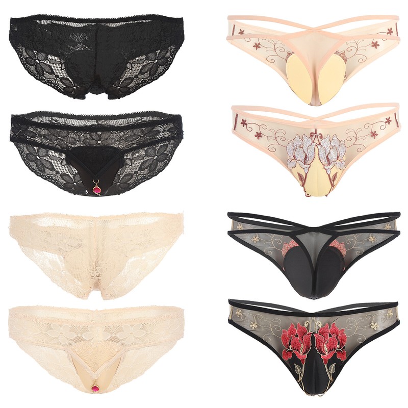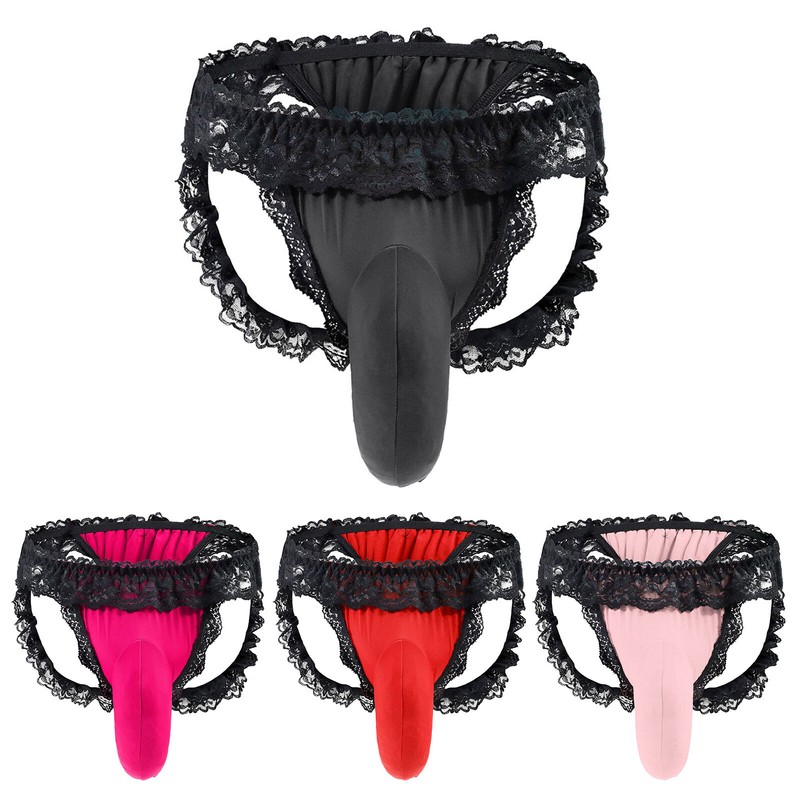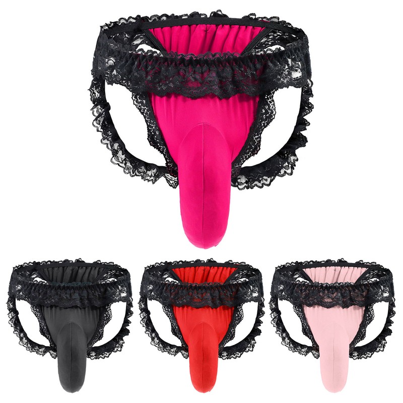 Designed with frilly lace, elastic waistband, bulge sheath and hip showing. Butt straps lift up smooth butt line, enhancing confidence.