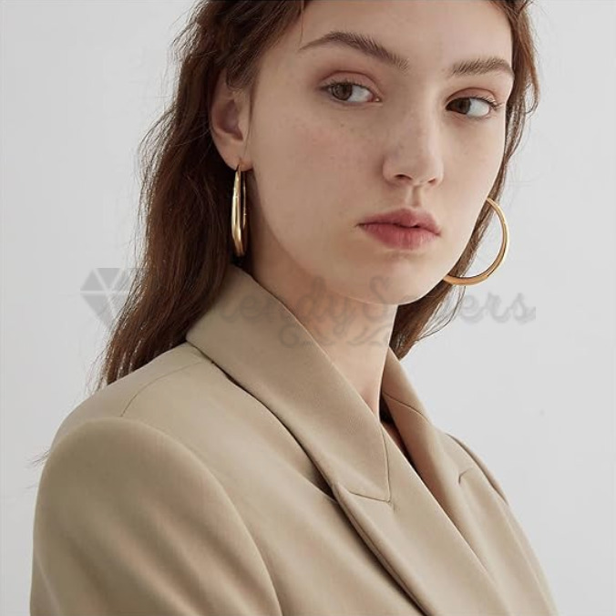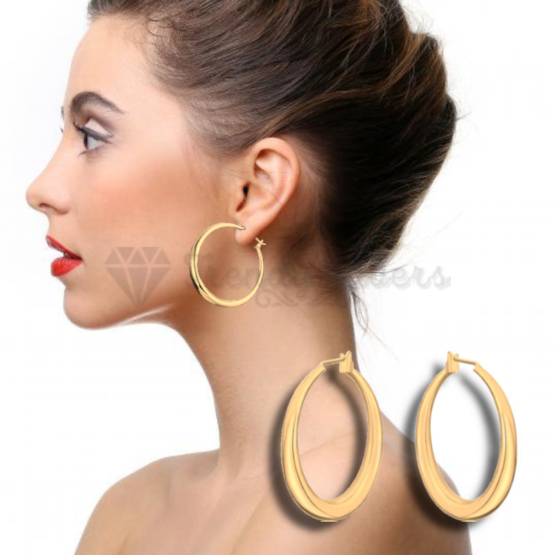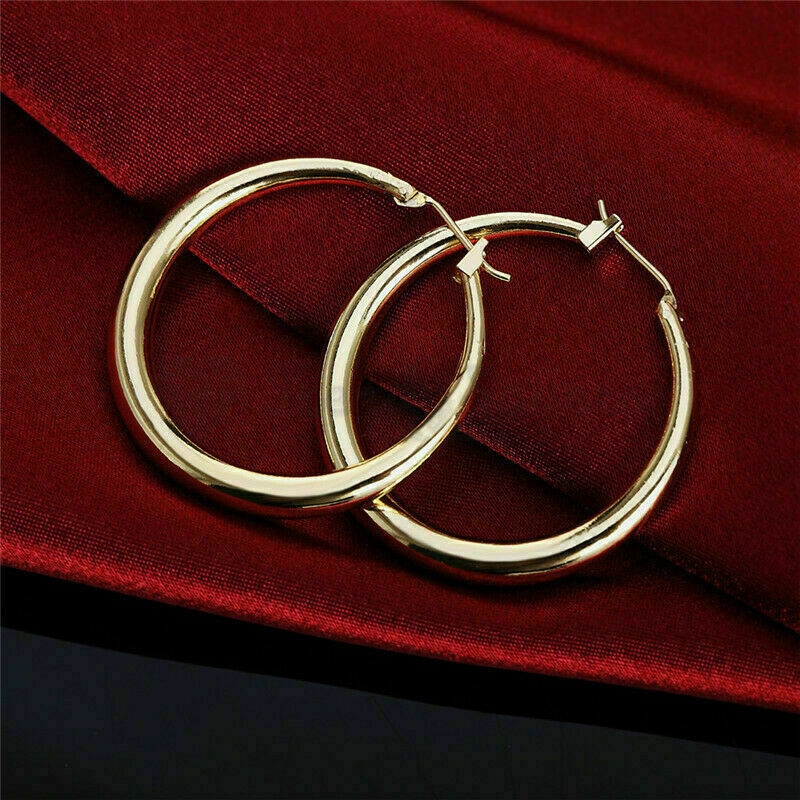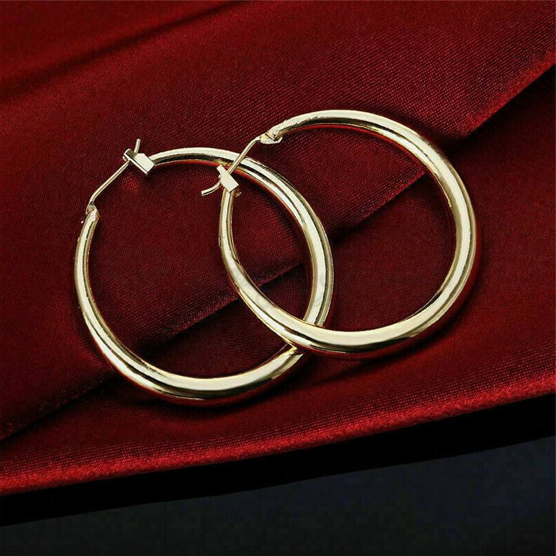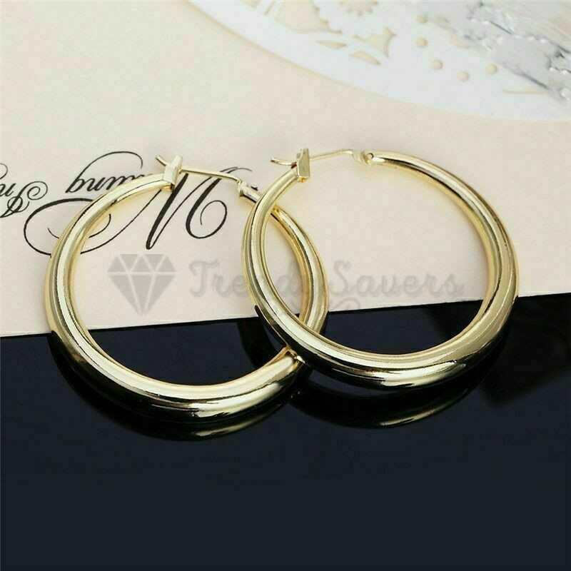 S925 Sterling Silver Filled Very Large Big Chunky Gold Hoop Earrings 40-80MM