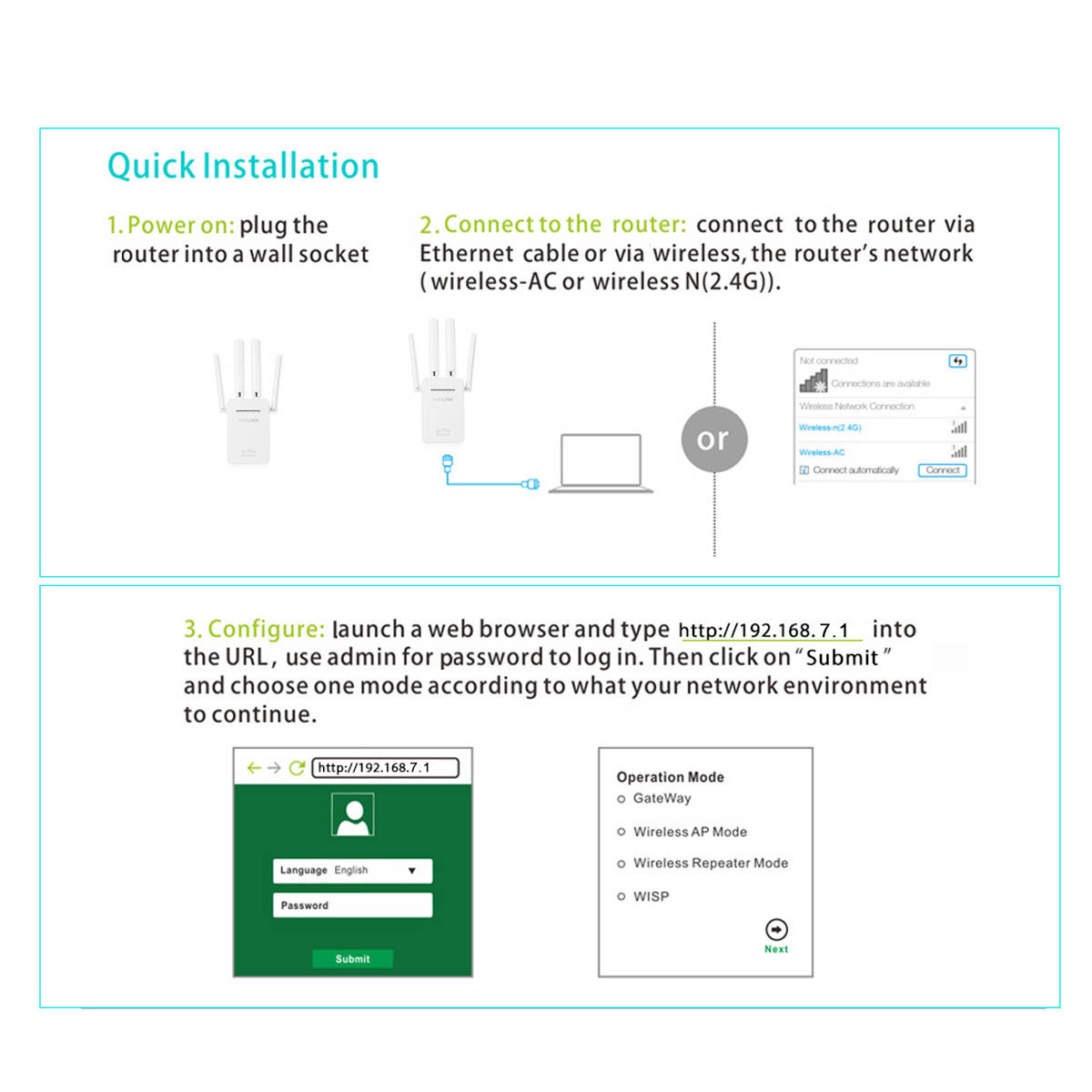 Mode 1: Repeater Mode to extend your existing WiFi Signal.