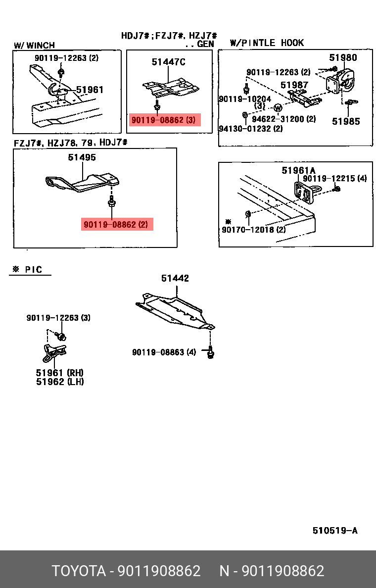 Genuine OE screw w/washer, 9011908862 for TOYOTA 90119-08862