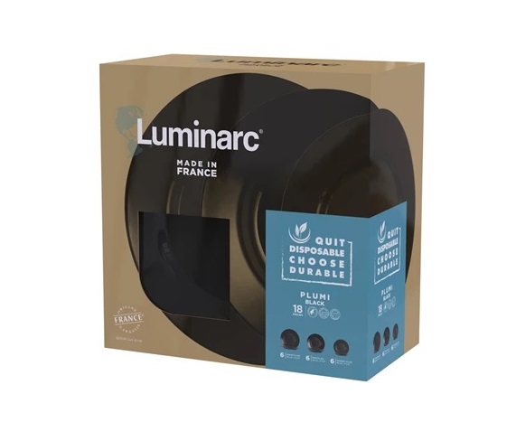 Servizio di Piatti da Tavola Arcopal Plumi Black 18 Pezzi Luminarc