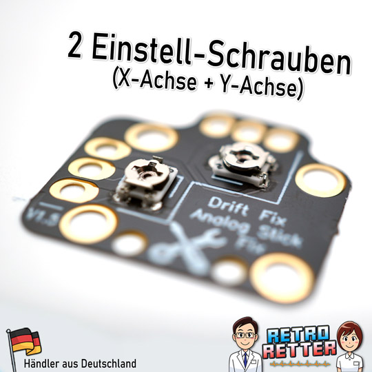 Die RetroRetter sind mit Hingabe und Leidenschaft im Einsatz, um für dich das beste Konsolen Zubehör und die hochwetigsten Ersatzteile zu finden. So auch bei unserem Stick Drift Fix Modul Paar Set. Über deine Konsolen hast du häufig leider keine Möglichkeit, die Analog Sticks deines Controllers zu kalibrieren. Und selbst wenn die Konsole eine Software Kalibierung anbietet, ist es manchmal notwendig die Analog Sticks hardwareseitig manuell zu justieren. Die Lösung ist der Einbau dieses Stick Drift Fix Moduls. Damit kannst du deinen Analog-Stick über die zwei eingebauten Stellschrauben manuell nachjustieren.