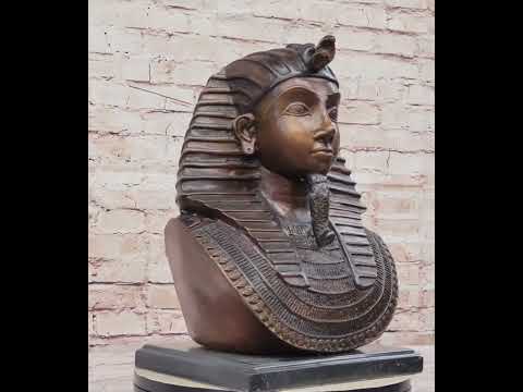 Experience the awe-inspiring grandeur of ancient Egypt with this breathtaking and meticulously crafted bronze sculpture, an invaluable addition to any archaeologist's collection. Depicting the illustrious Pharaoh, the most powerful figure in ancient Egypt, this sculpture captures the essence of the ruler's authority and divinity. With its exquisite detail and lifelike portrayal, the sculpture showcases the Pharaoh seated stoically on his throne, embodying the revered status and commanding presence of the ancient Egyptian rulers. His attire, including the distinctive headdress and regal cloak, serves as a visual testament to the opulence and splendor associated with the Pharaohs of ancient Egypt.