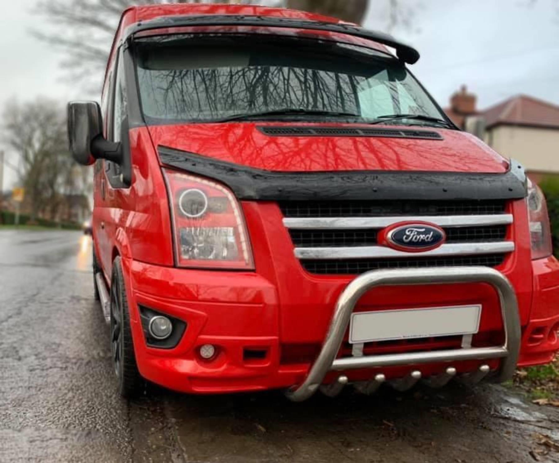 High quality Acrylic Bonnet Guard / Shield for Ford Transit MK7 (2007 - 2014 model). This top of the range bonnet guard will have your 4x4 looking top spec at a fraction of the cost of the genuine items but with the same high quality. Made with high-impact resistance acrylic, this bonnet guard protects your vehicle from paint damage caused by debris whilst driving.