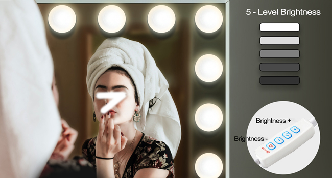 Item description from the seller 💡3 COLOR MODES :Factory based company with professional makeup artist make this vanity mirror light bulbs owns the only one 3 color modes on the market. Daylight white and warm white and Natural light 3 light color options meet your different needs in different occasion. Make you relax to makeup under the ideal light color and present a perfect makeup. 💡AJUSTABLE BRIGHTNESS :10 Hollywood style dimmable LED light bulbs provide plenty on brightness to makeup in dark, 350LM-1200LM of those bulbs soft and do not emit extra heat, allows you to make-up for a long time without hurting for your eyes. 1-5 level dimming can be adjusted as you like. 💡EASY TO USE AND SAFER USB POWER SUPPORT :Press the circular button to turn on/off. Long press the top botton for warm light regulation and long press the bottom to change to daylight white regulation. This LED lights use USB low voltage power support(5V 2A, Safer than Adapter) , can be used on USB plug , power bank an