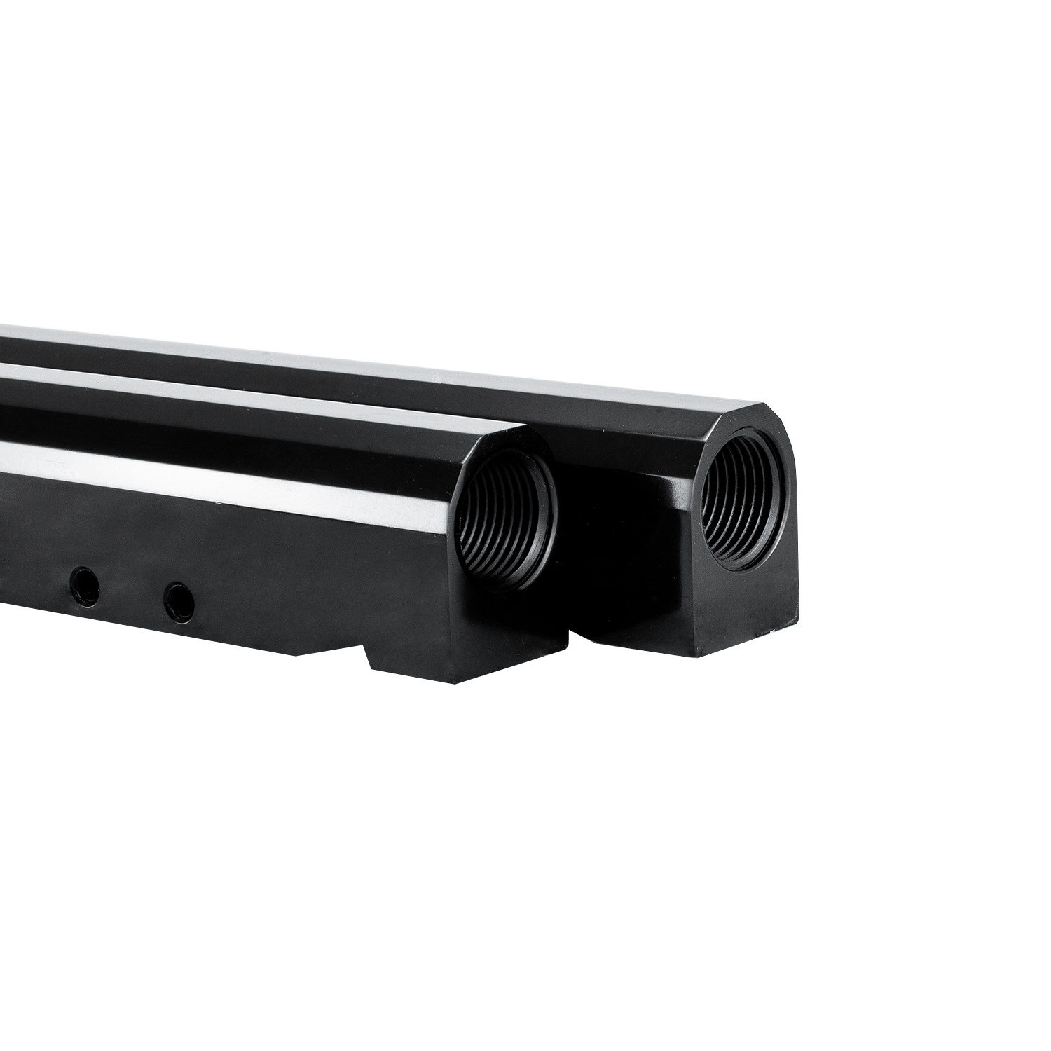 Our Fuel Rails are CNC-machined to precise tolerances then anodized black for a dignified finish. Designed for OE-Style LS Intake manifolds these aluminum EFI fuel rails are capable of feeding 1,100+ HP engines. Featuring 1/2" diameter inner bore to decrease fuel pressure drop, help cancel out back pulses, and distribute fuel to all injectors properly.