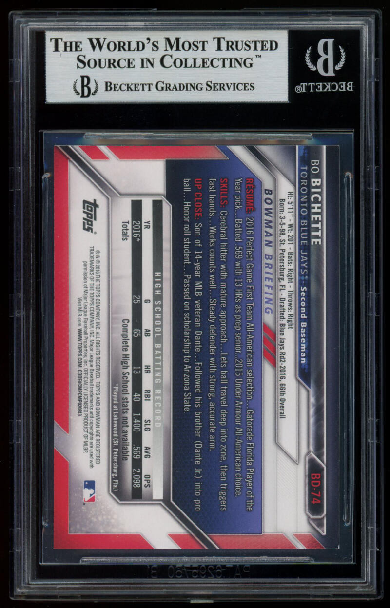 2016 Bowman Draft Bo Bichette 1st Bowman #BD-74 BAS Auto