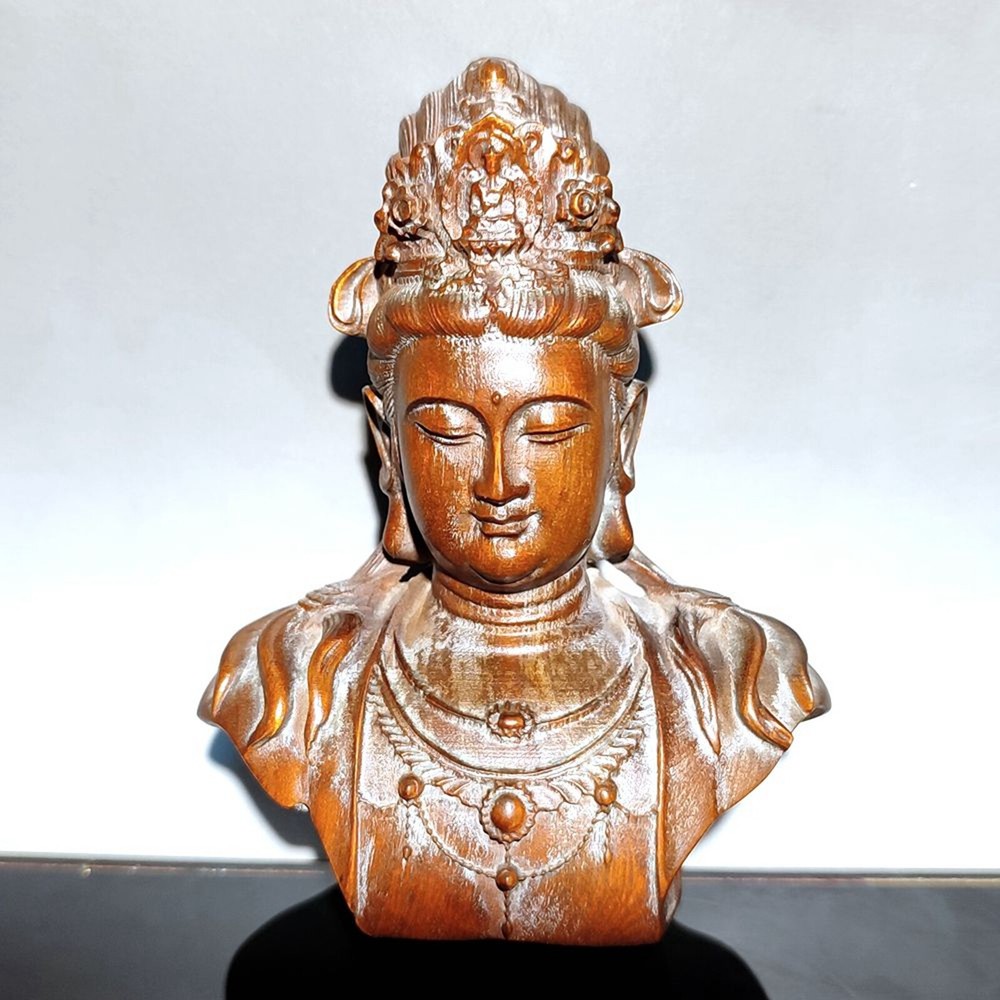 Vintage Wood Wooden Carved Carving Figure Kuan Yin Antique Sculpture Bust Mini
