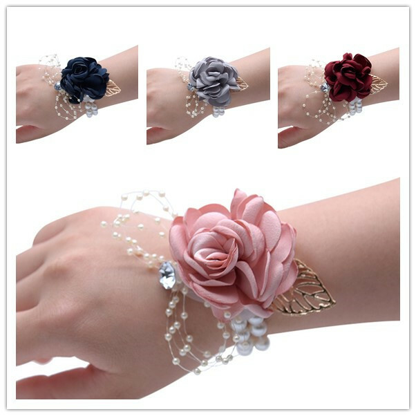 Wedding Pearls Hand Flowers Wrist Bouquet Corsage Bride Bridesmaid Flower Beauty