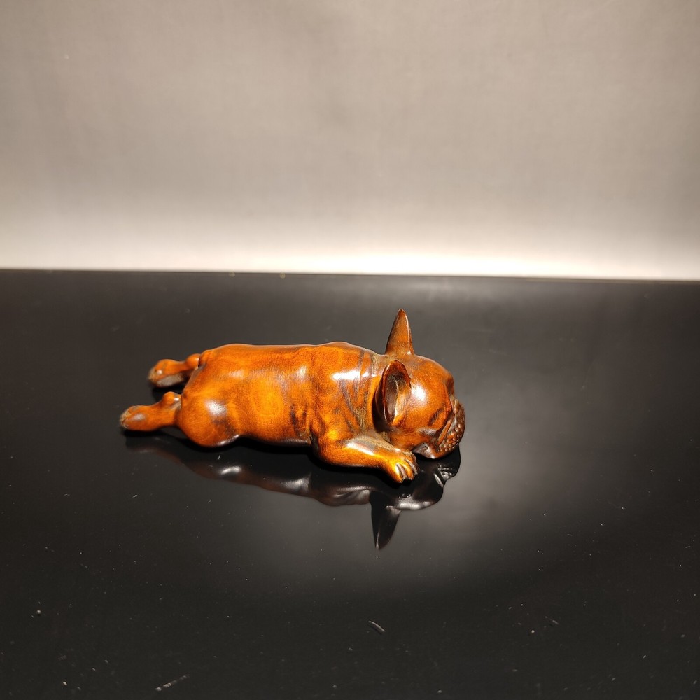 Antique Asian Wood Carving Pet Dog Small Commemorative Statue Action Figure Gift