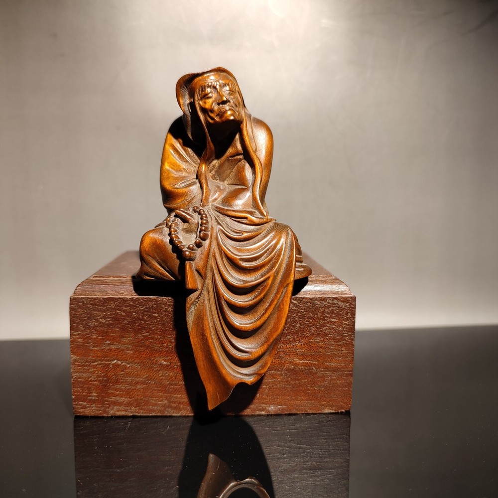 Old Collection Boxwood Carving Seiko Carved Small God of Wealth Home Decoration