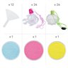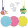 Help kids create something unique with this sand art kit. With enough empty beach-themed necklaces and colored sand art for up to two dozen kids, this kit provides plenty of creative entertainment for kids and helps them utilize their creativity to create something special. Great for a kids’ activity table at an under-the-sea party, these necklaces will be a hit! (63 pcs. per unit)br br Includes:br • 1 lb. Pink Craft Sand (4 1/4" x 5 1/4" x 1 1/2")br • 1 lb. Yellow Craft Sand (4 1/4" x 5 1/4" x 1 1/2")br • 1 lb. Light Blue Craft Sand (4 1/4" x 5 1/4" x 1 1/2")br • 12 Plastic Funnels (2" tall with a 1/4" bottom and a 1 3/4" top opening.)br • 24 Plastic Tropical Fish Sand Art Bottle Necklaces (2 1/2" with a 24" cord. Requires 9 oz. of total sand to fill bottles. Recommended for ages 5+)br • 24 Plastic Sea Shell Sand Art Bottle Necklaces (2" x 2 3/4" on a 30" cord.)br br • Assortments are subject to change at any time and may vary from picture shown. Substituted items will be similar in nature.