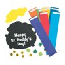 • CREATIVE CLASSROOM ACTIVITIES: Introduce these craft kits in classroom art projects for a fun, learning experience!br • KID'S PARTY CRAFTS: Children at a St. Patrick’s Day party can design their own ornaments, signs, and bracelets, creating a memorable event.br • DECORATING IN STYLE: Kids can have fun assembling these craft projects and then decorate their room or play area with green St. Patrick's Day signs and mobiles.br br Product Description:br Follow the rainbow to the pot of gold with this fun St. Patrick's Day craft for kids. It's a great party activity to keep kids busy while the adults relax, or add it to your Sunday School classroom supplies and tell your students the story of St. Patrick to keep them focused. The finished kits make wonderful and colorful classroom or party decorations. All craft kit pieces are pre-packaged for individual use. Kits include instructions and extra pieces. © OTCbr br Size: 5" x 15"br Quantity: Makes 12.br Material: Includes self-adhesive foam pieces and paper strips.