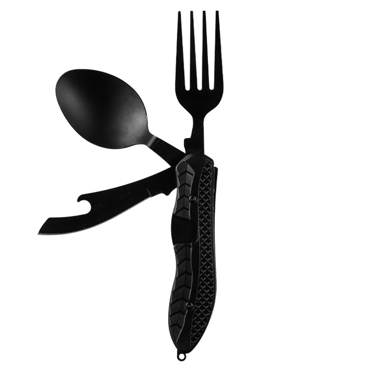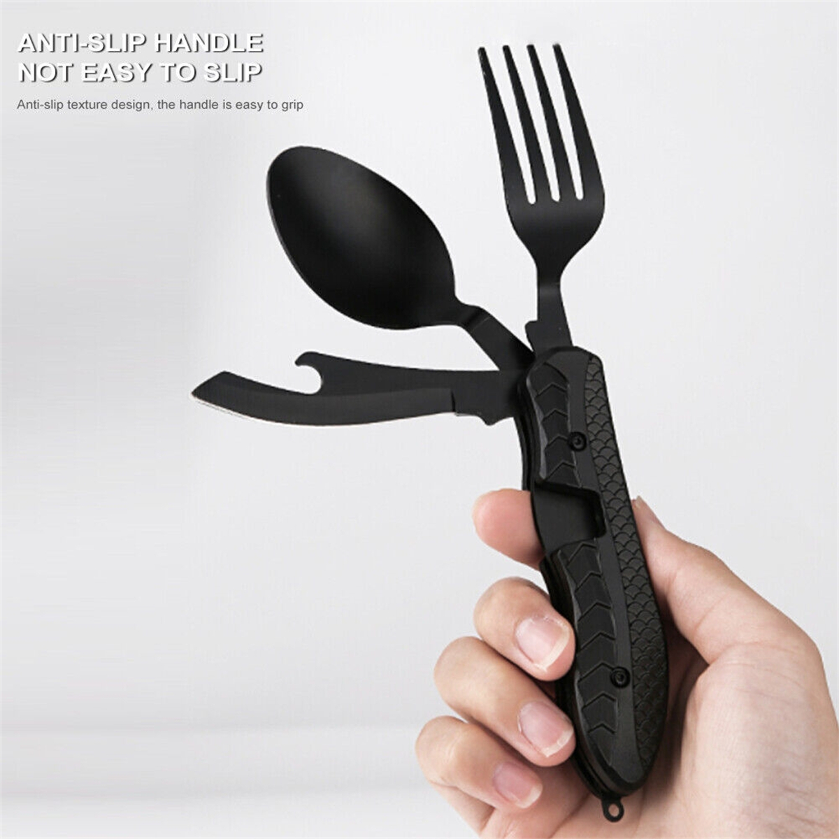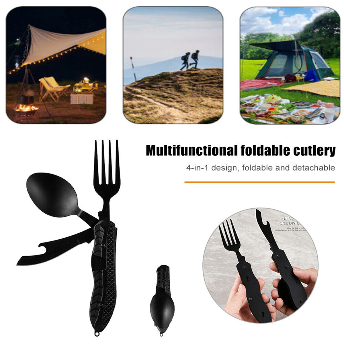4 In 1 Outdoor Camping Travel Folding Utensils Spoon Fork Knife Bottle Opener