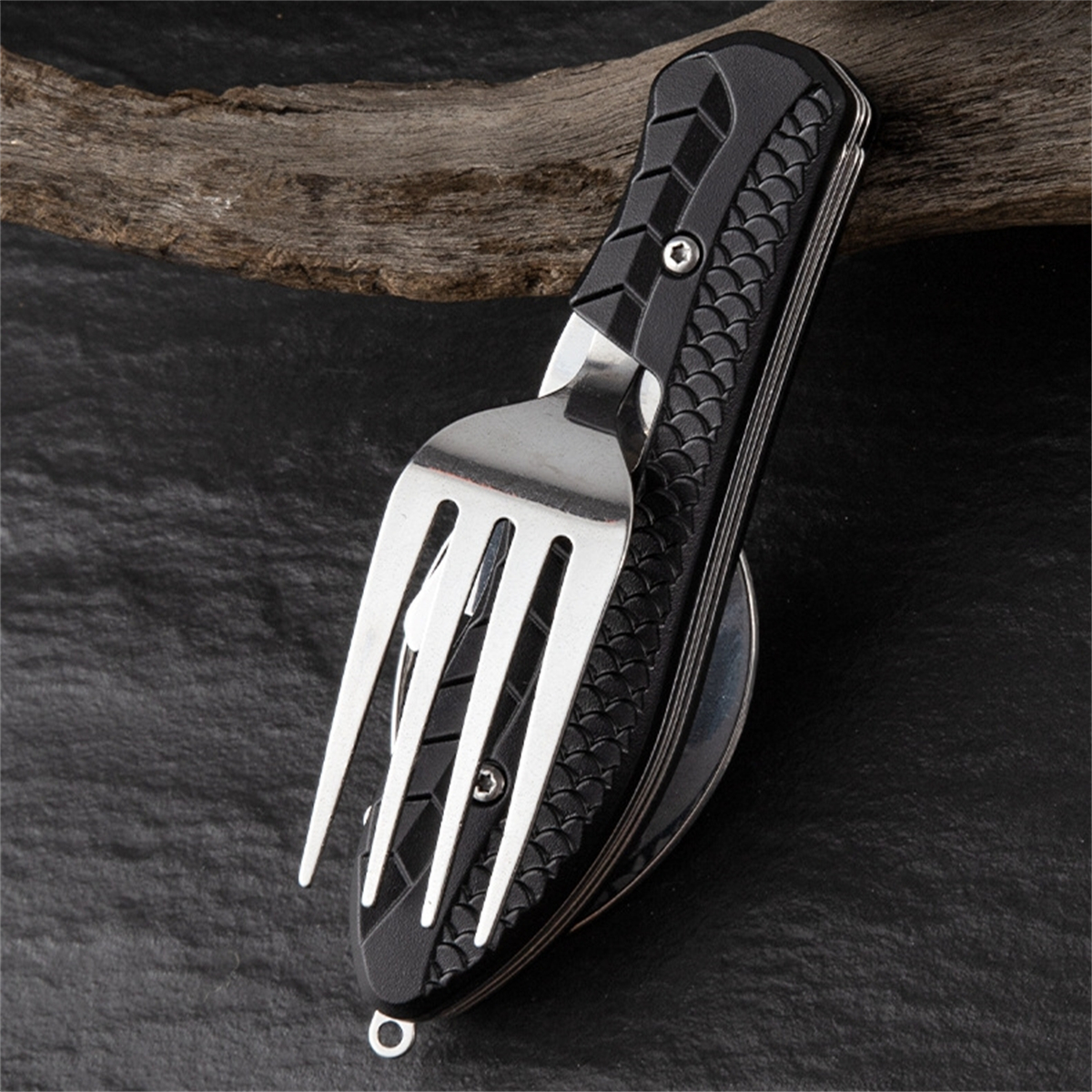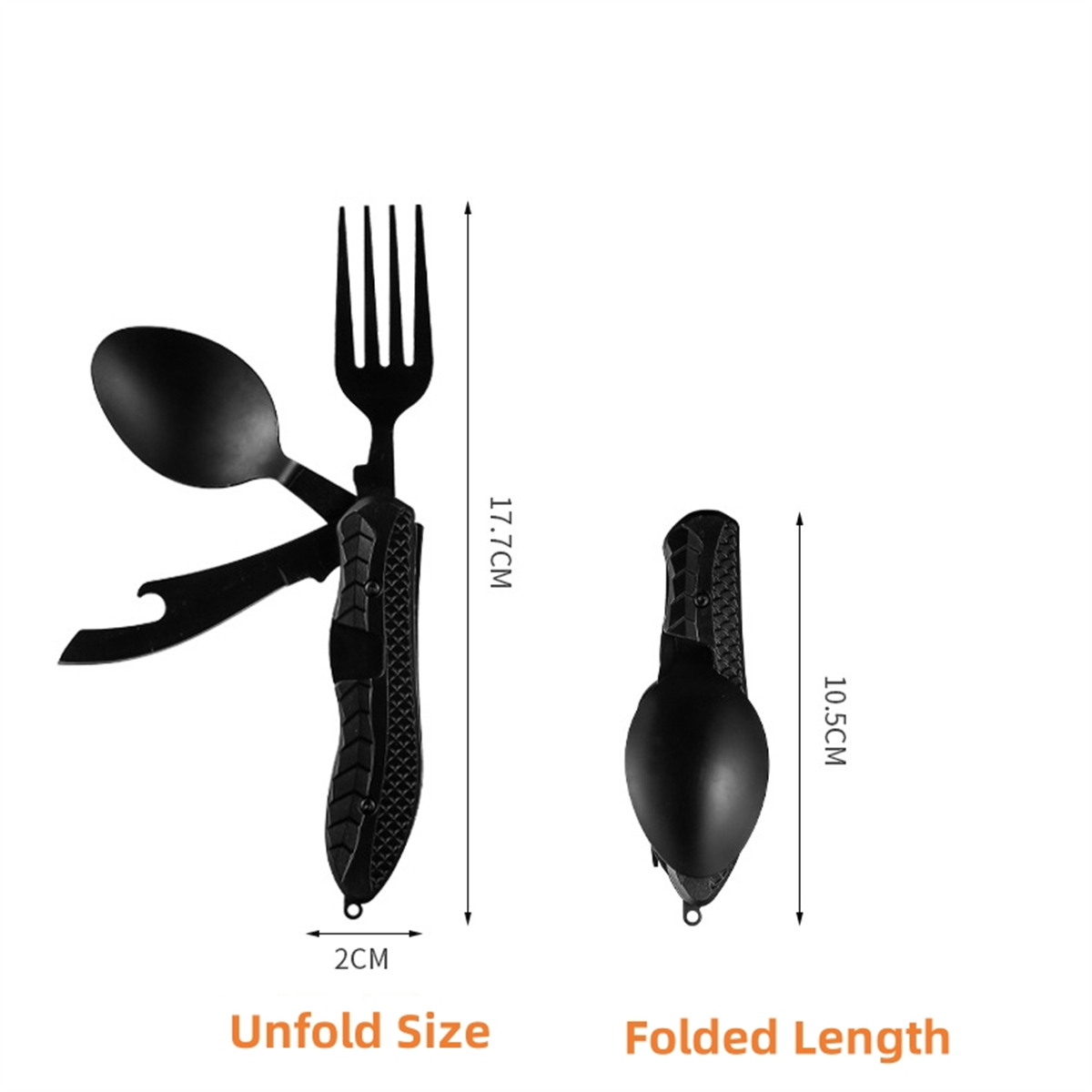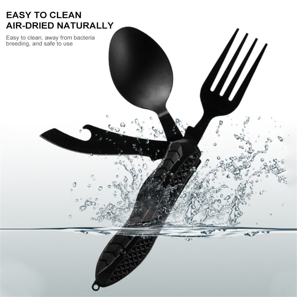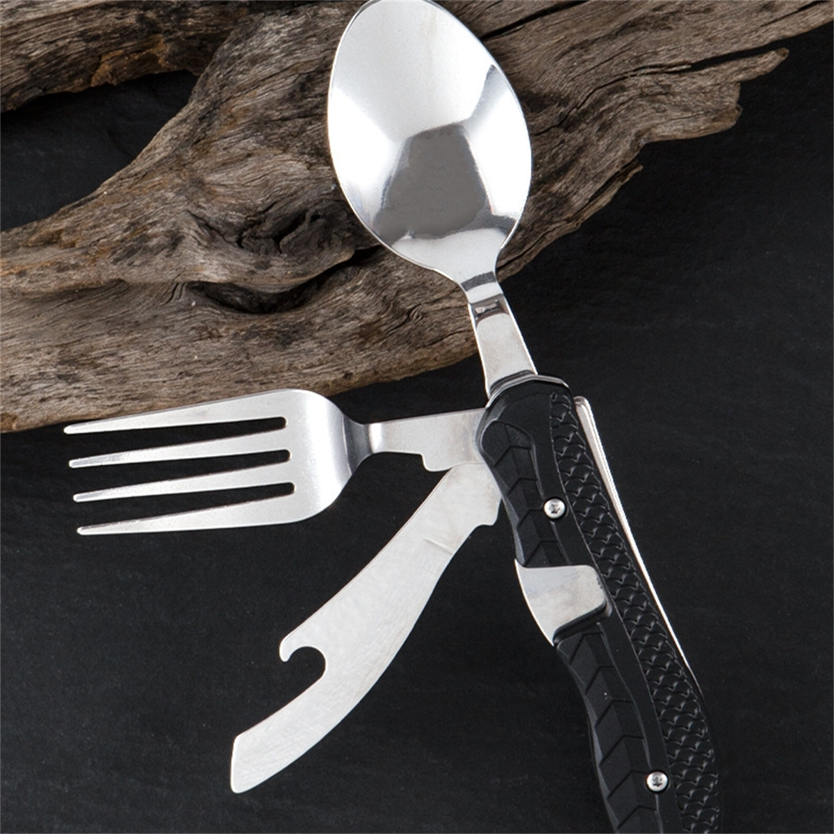 4 In 1 Outdoor Camping Travel Folding Utensils Spoon Fork Knife Bottle Opener