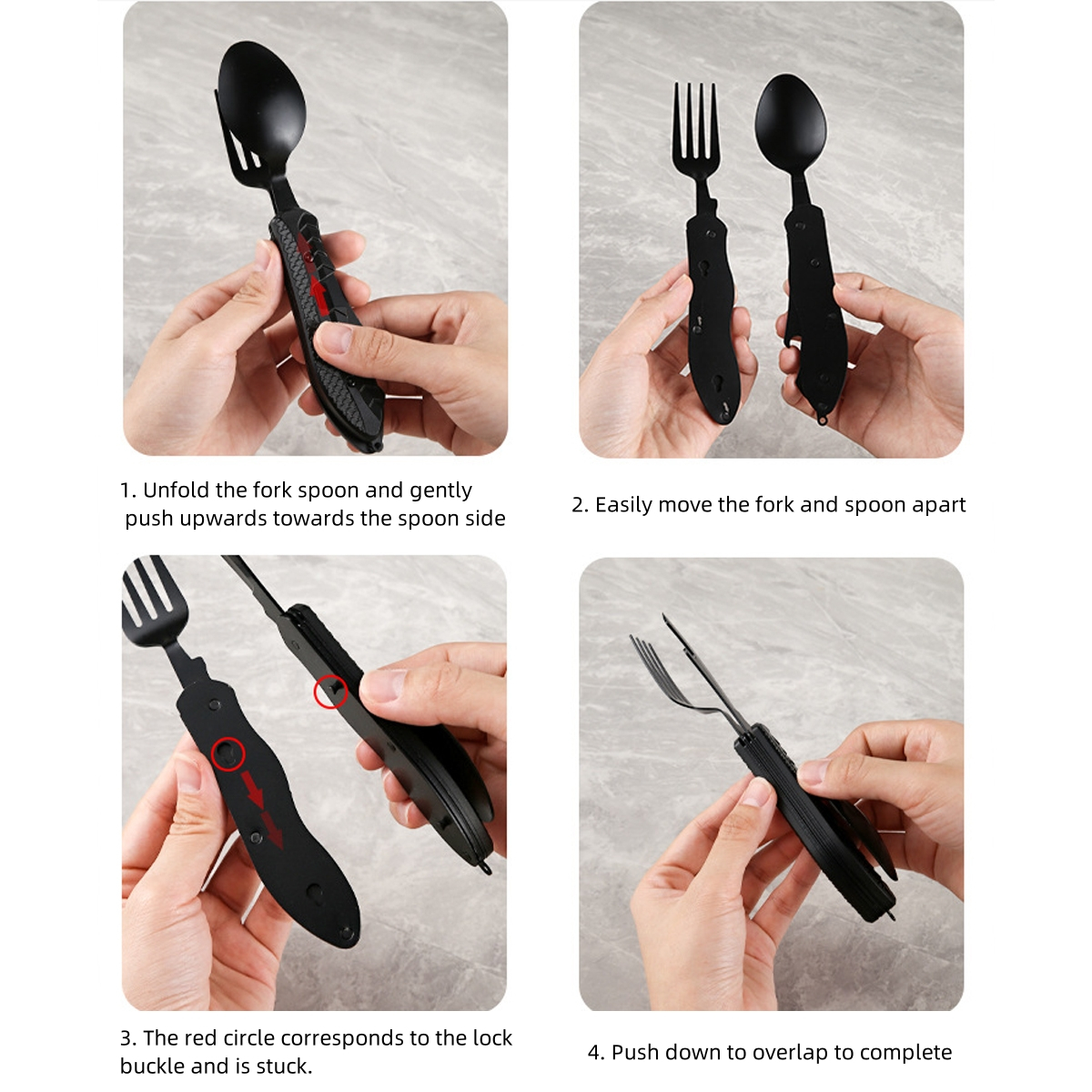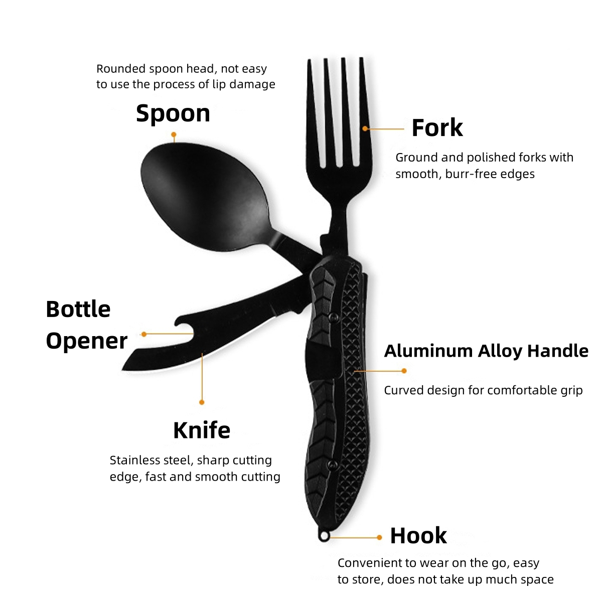 2. Detachable design, the fork, spoon, knife and bottle opener are convenient for outdoor camping or travel.