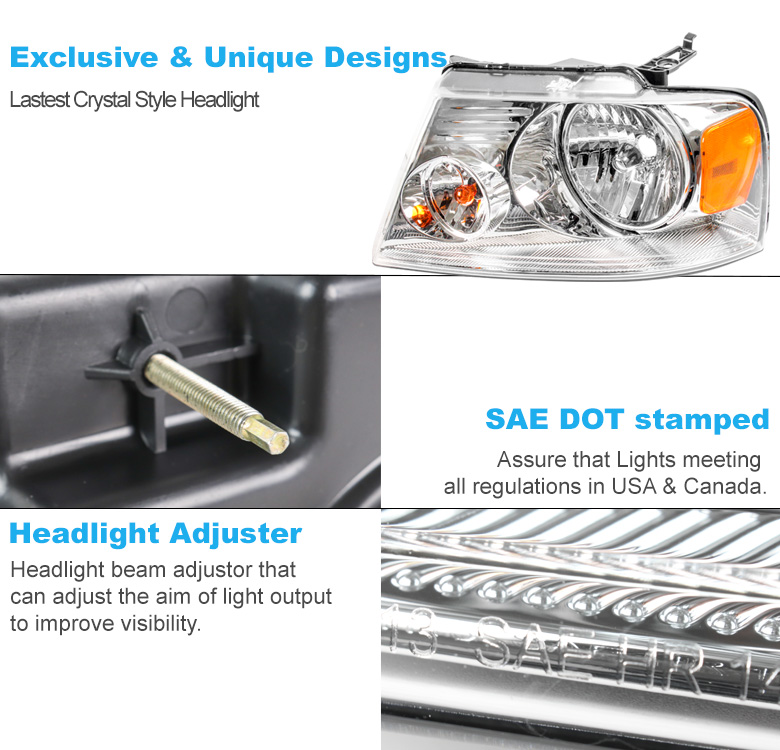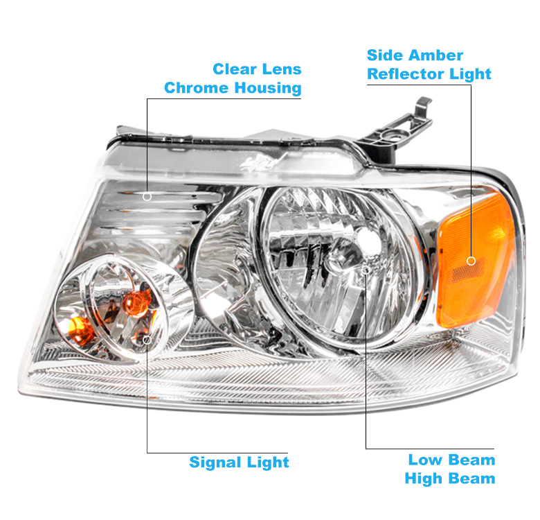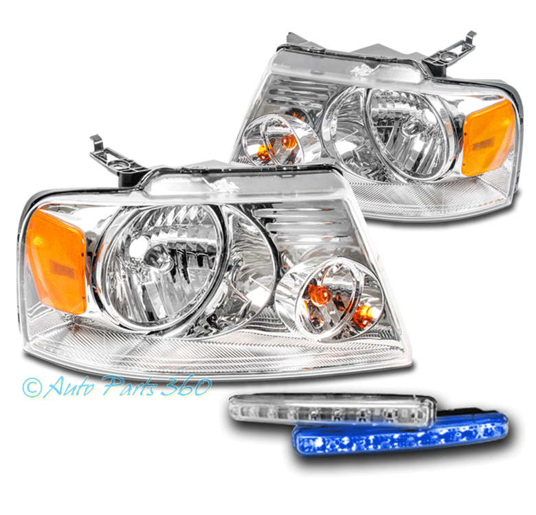 For 2004-2008 Ford F-150 Replacement Headlights w/6" Blue LED DRL - Chrome | ||||||||||||||||||||