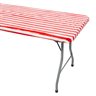 Fun Express 6 ft. Red & White Striped Plastic Fitted Tablecloth